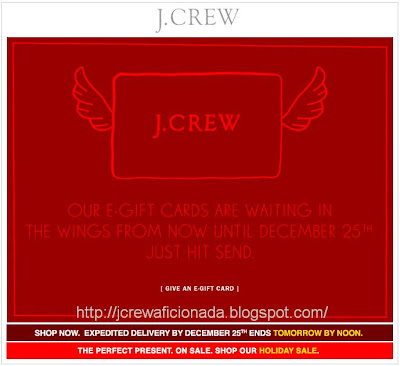 Will you get/give a J.Crew e-gift card? Do you prefer e-gift cards? Were you surprised to not see any new promotions being offered today? Do you think J.Crew will run another promotion soon? :)