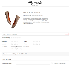 "Thanks!" to many of you including, Shopaholic (in this post), as well as Dinagideon, who let us know that Madewell is moving towards customer reviews on their site. Shopaholic (in this post) shared the following: